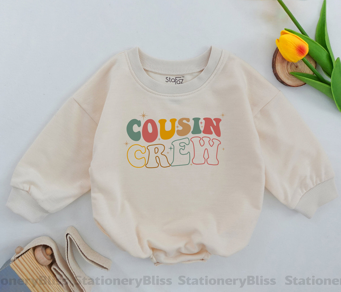 STAFAZ Boho Retro Cousin Crew Romper Natural Infant Baby Sweatshirt Outfit Gender Neutral Tee Cousin Crew Gift