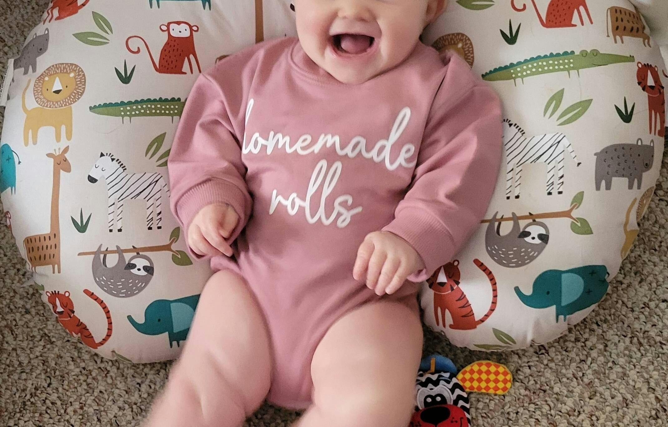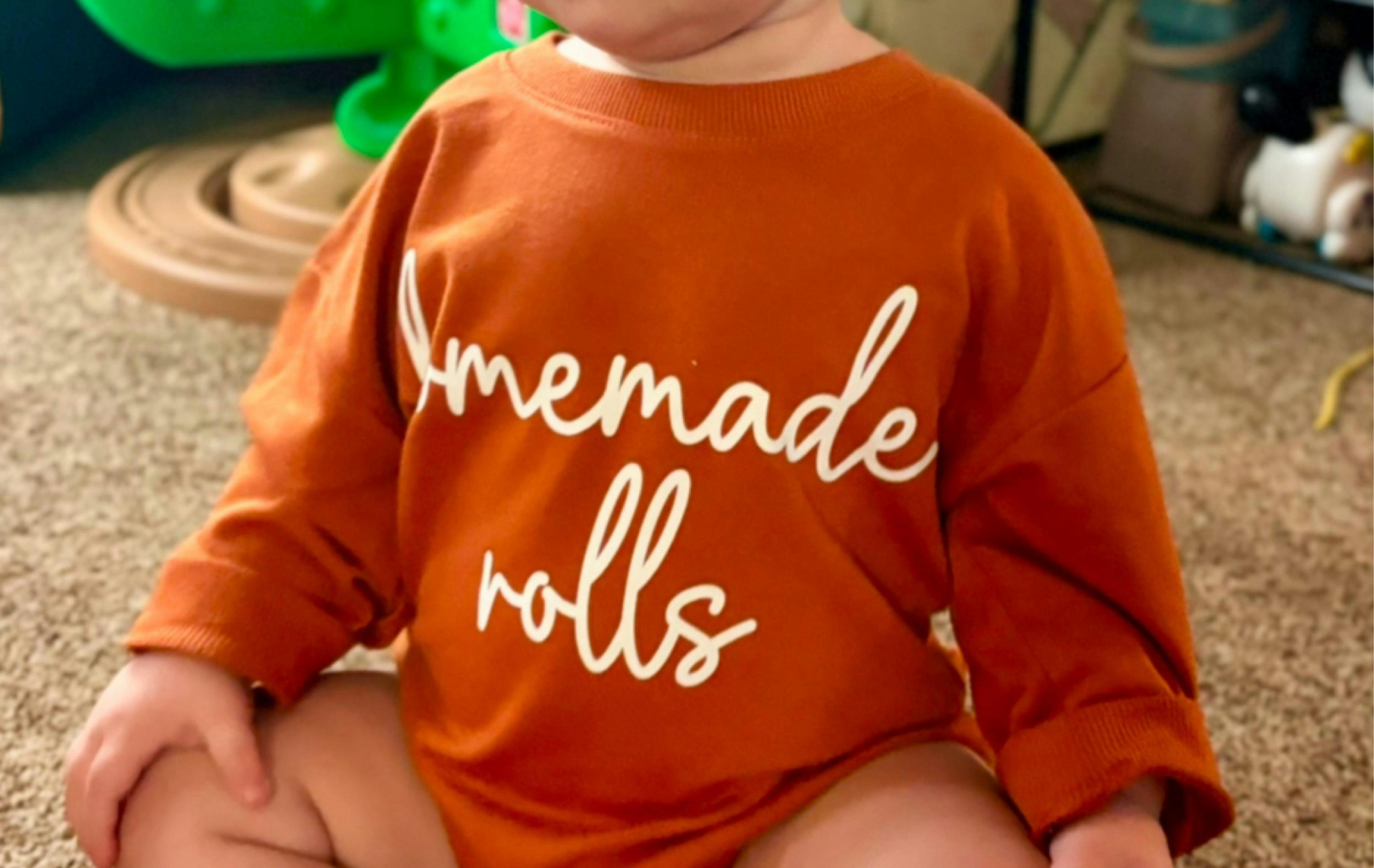 Picture this: a cozy autumn afternoon, your little one bundled up in this adorable 'Homemade Rolls' romper, a smile as sweet as a freshly baked treat. This retro-inspired design evokes all the warm fuzzies of fall gatherings and Thanksgiving feasts, making it the perfect outfit for making cherished memories. It’s ideal for capturing those funny, candid moments that become treasured family stories. Whether it’s a casual day exploring crunchy leaves or a special family meal, this romper brings a touch of playful nostalgia and comfort. It's a delightful choice for baby showers, welcoming a new bundle of joy with a touch of seasonal cheer. Wrap your little love in this charming piece and let the sweet autumn adventures begin.