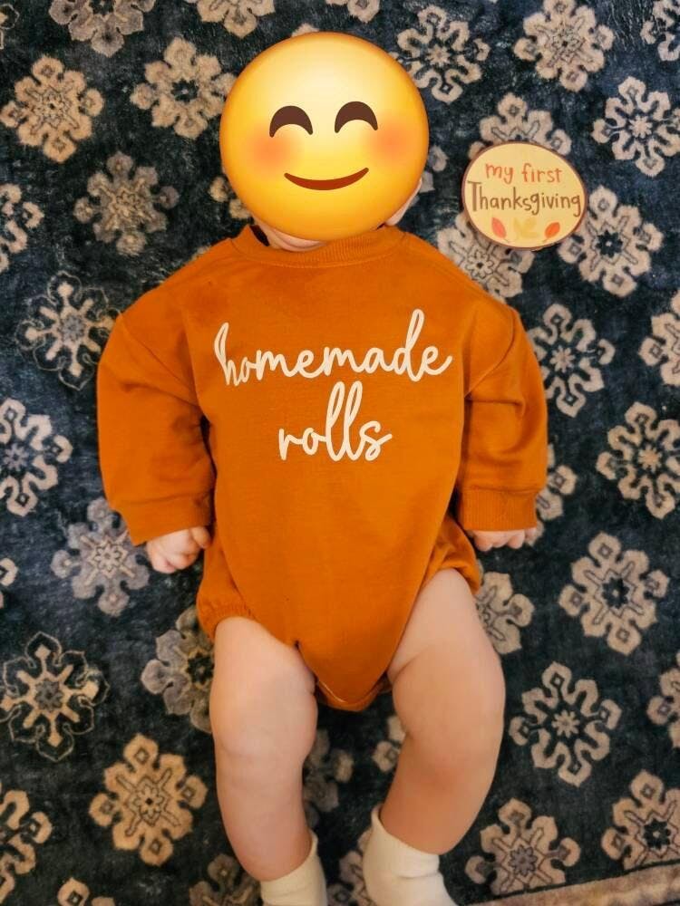 Homemade Rolls Retro Baby Romper, Fall Outfit Baby, Autumn Kids Clothes, Thanksgiving Bodysuit Baby Shower Gift