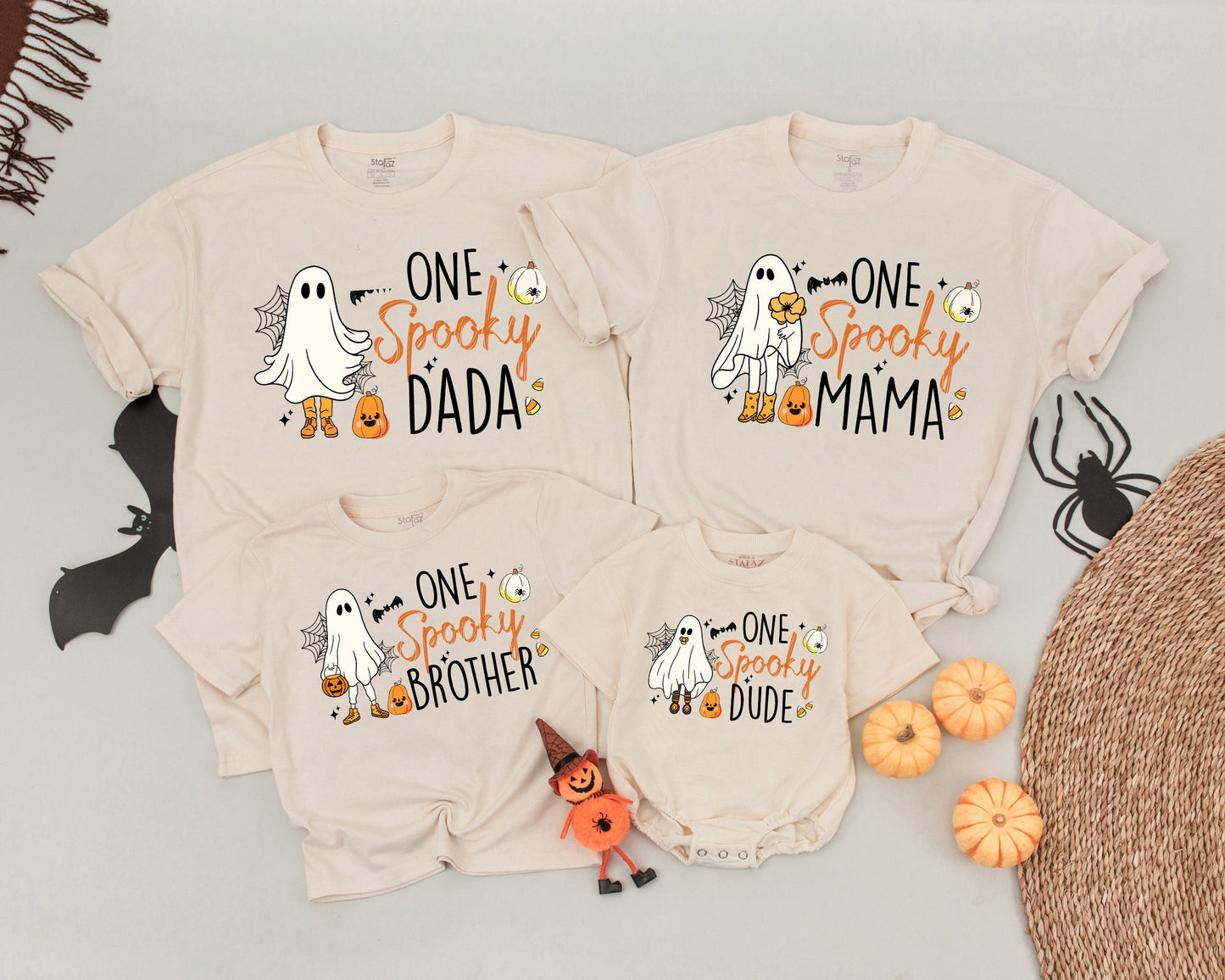 Unite in spooky style with our retro Halloween family shirts. Perfect for baby's first Halloween or as a baby shower gift, these vintage ghost tees are ideal for matching family outfits. Celebrate with unique designs perfect for fall festivities and Thanksgiving. Embrace the spooky dude vibe!