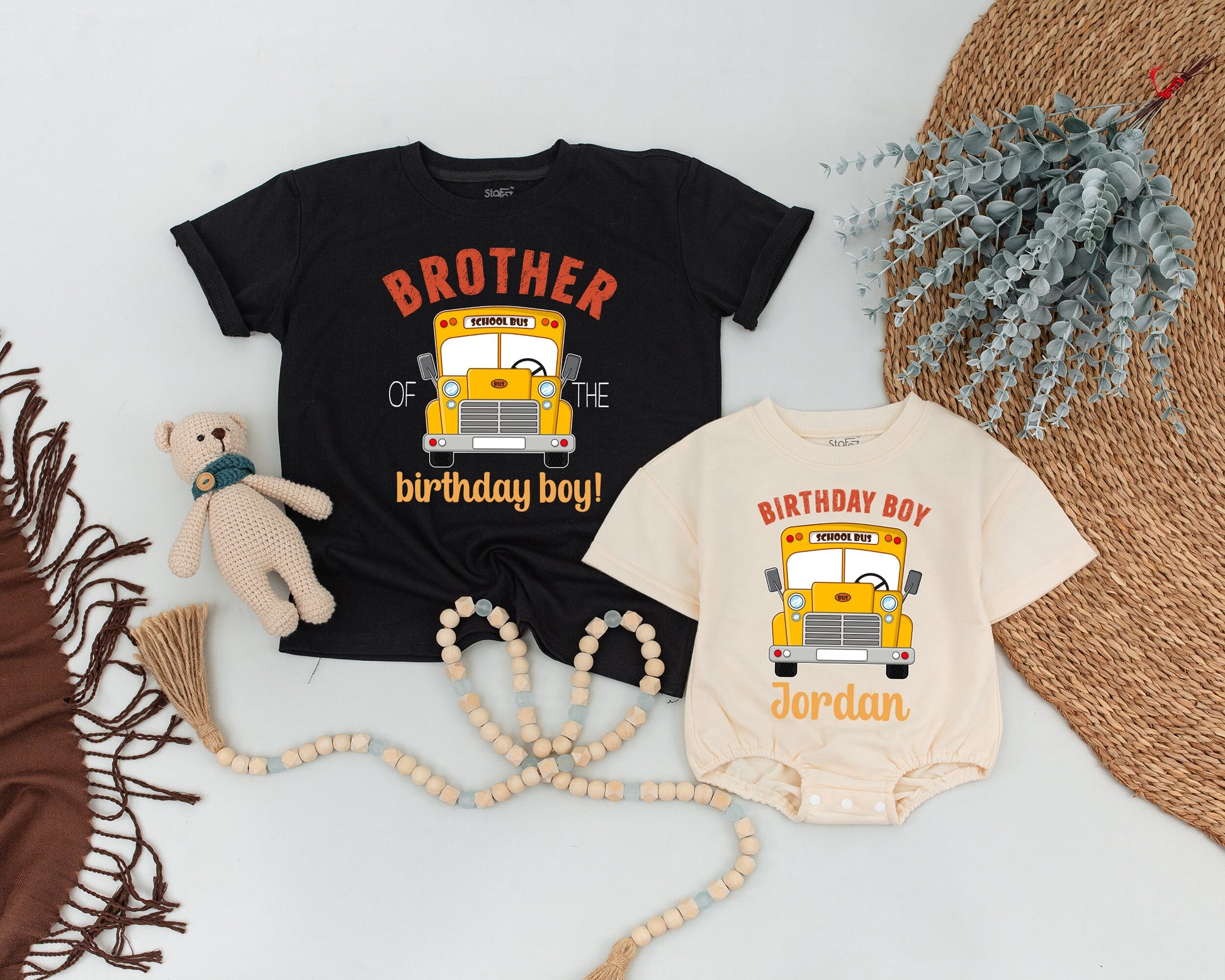 School Bus Birthday Matching Family Shirts Daddy Mommy Baby Birthday Boy Outfit Custom Celebration Fun Ride