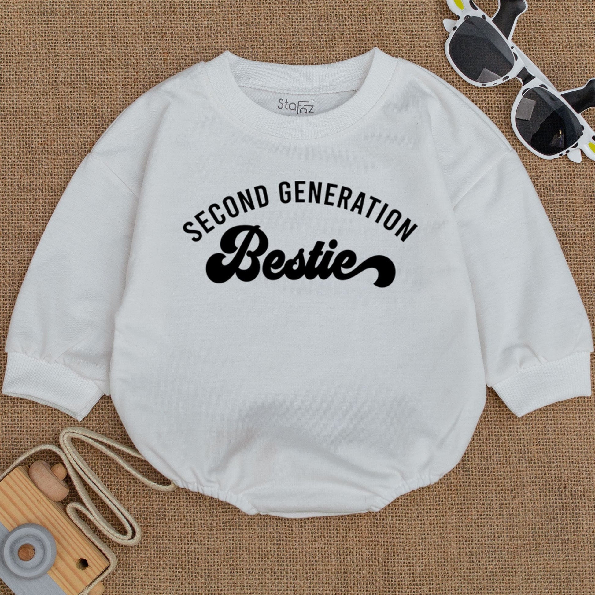 Imagine the heartwarming joy of seeing your little one celebrate a special bond, just like yours! This adorable baby romper perfectly captures the essence of enduring friendship, celebrating the unique connection between 'second generation besties' who are truly 'besties like our moms'. Crafted from soft, breathable cotton, it's designed for ultimate comfort during playdates, family gatherings, or those precious first photoshoots. It's a beautiful way to honor cherished friendships and create delightful matching moments with another special baby. This charming outfit makes an unforgettable baby shower gift or a thoughtful present for a new little bestie. Capture those precious memories and celebrate a bond that truly stands the test of time.