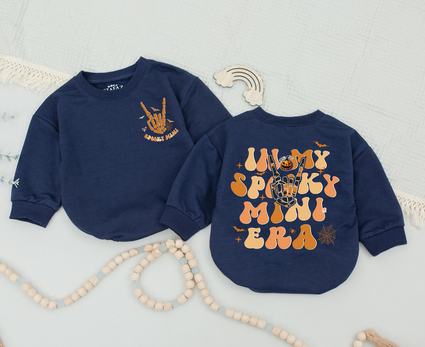 Celebrate in style with our Retro Halloween family outfits. Perfect for a spooky season gift, these matching sweaters are ideal for moms, babies, and the whole family. Featuring playful ghost designs and pumpkin motifs, make your first Halloween a memorable one. Get cozy with Spooky Mama and Spooky Dude looks!