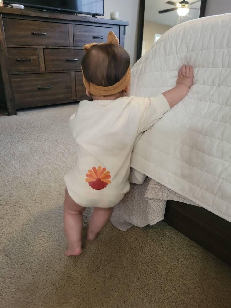 Oh, how sweet is the first Thanksgiving! Dress your little one in this adorable Little Turkey romper and capture precious memories. Perfect for a fall baby shower gift or a memorable first Thanksgiving outfit. Imagine your little one, all bundled up, surrounded by family and the warmth of the holiday season. This romper is designed to bring joy and create lasting memories! It's the perfect way to celebrate those early days and create a cherished tradition.