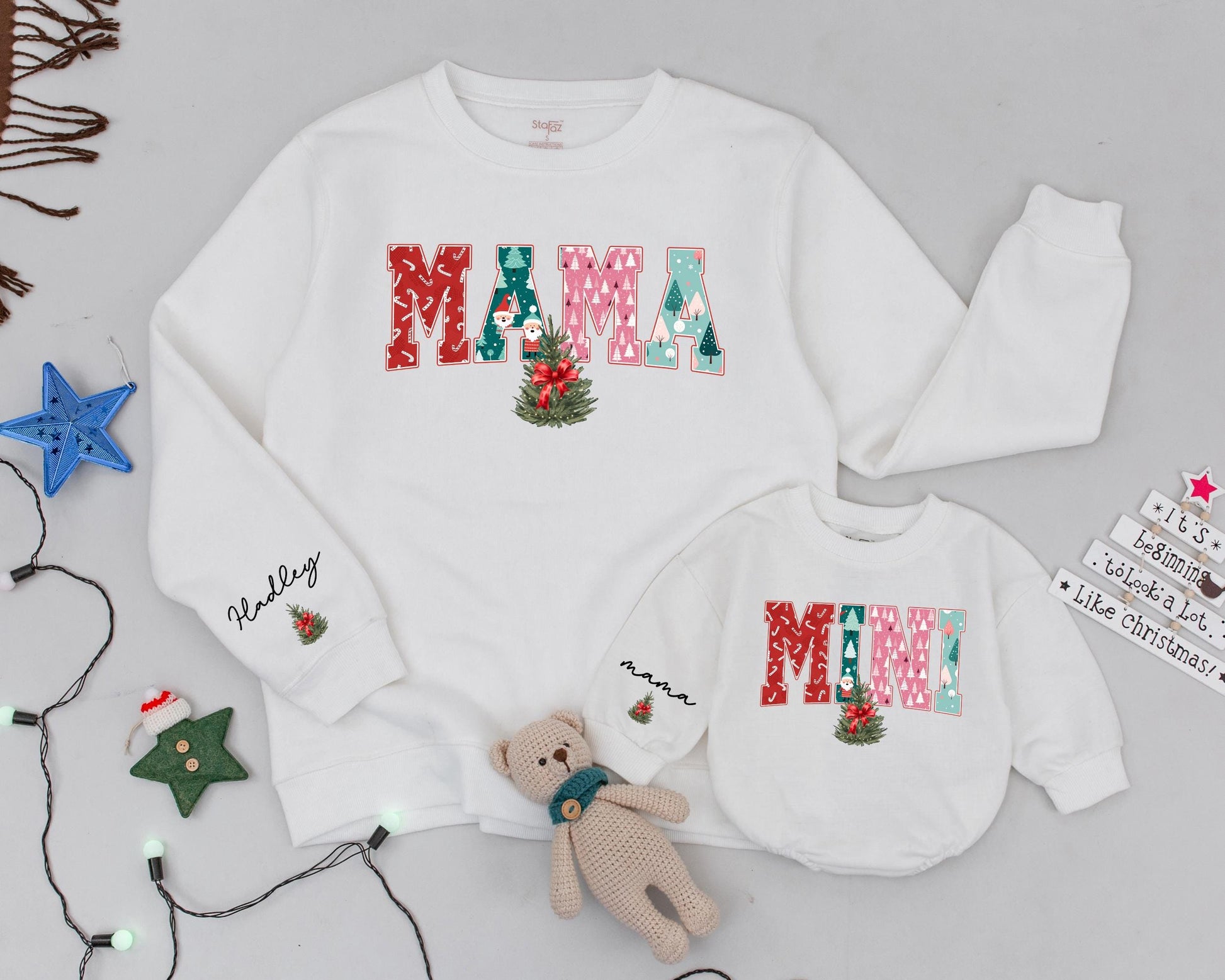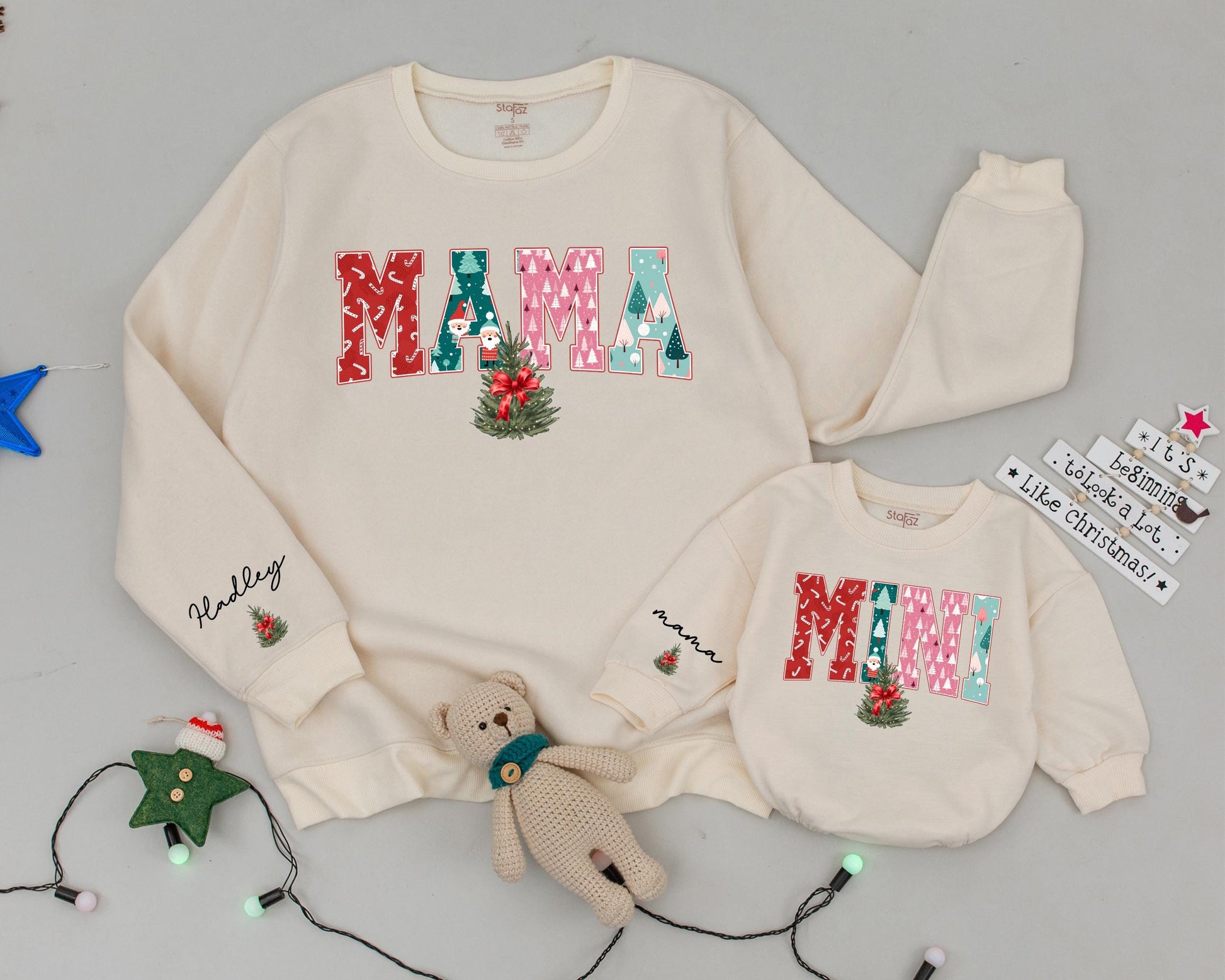 Celebrate the season with our Retro Mama and Mini Sweatshirt Set! Featuring a vintage Christmas tree design, it's perfect for mommy and me moments. Customize with names for a unique family touch. Ideal for festive gatherings, baby showers, or as special gifts for grandma. Make it a merry celebration!