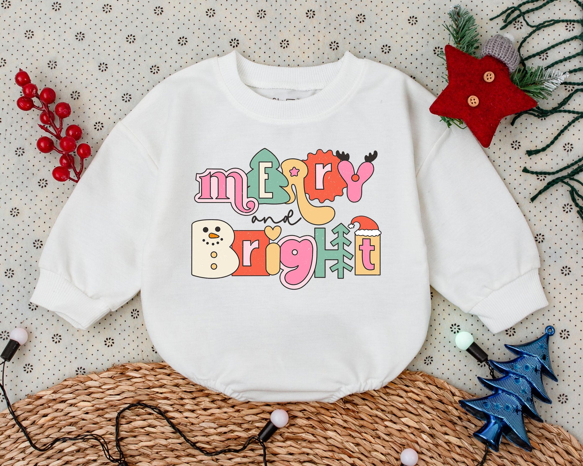 Vintage Merry & Bright Romper: Baby's First Christmas Outfit Gift