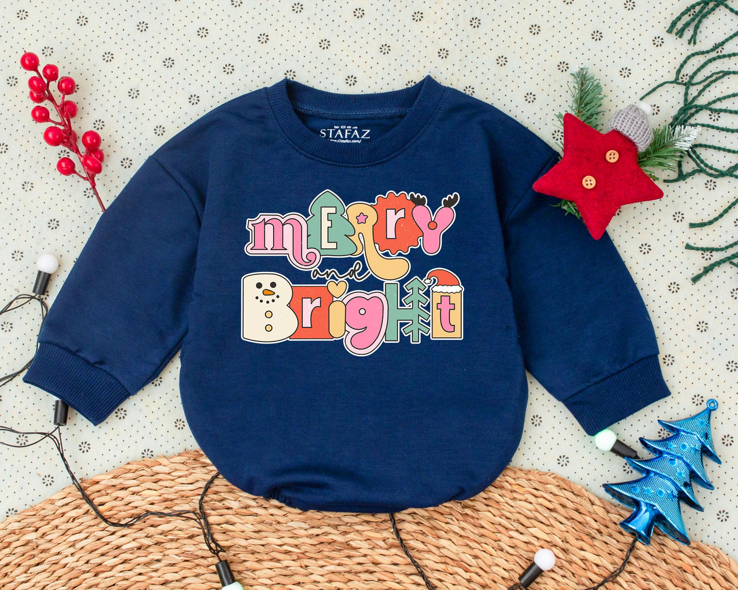 Celebrate your baby's first holiday with this vintage-style romper, perfect for Christmas photos and special occasions. Soft, comfortable, and designed with festive flair, it's an ideal gift for baby showers or a unique coming-home outfit. Make their first Christmas merry and bright!