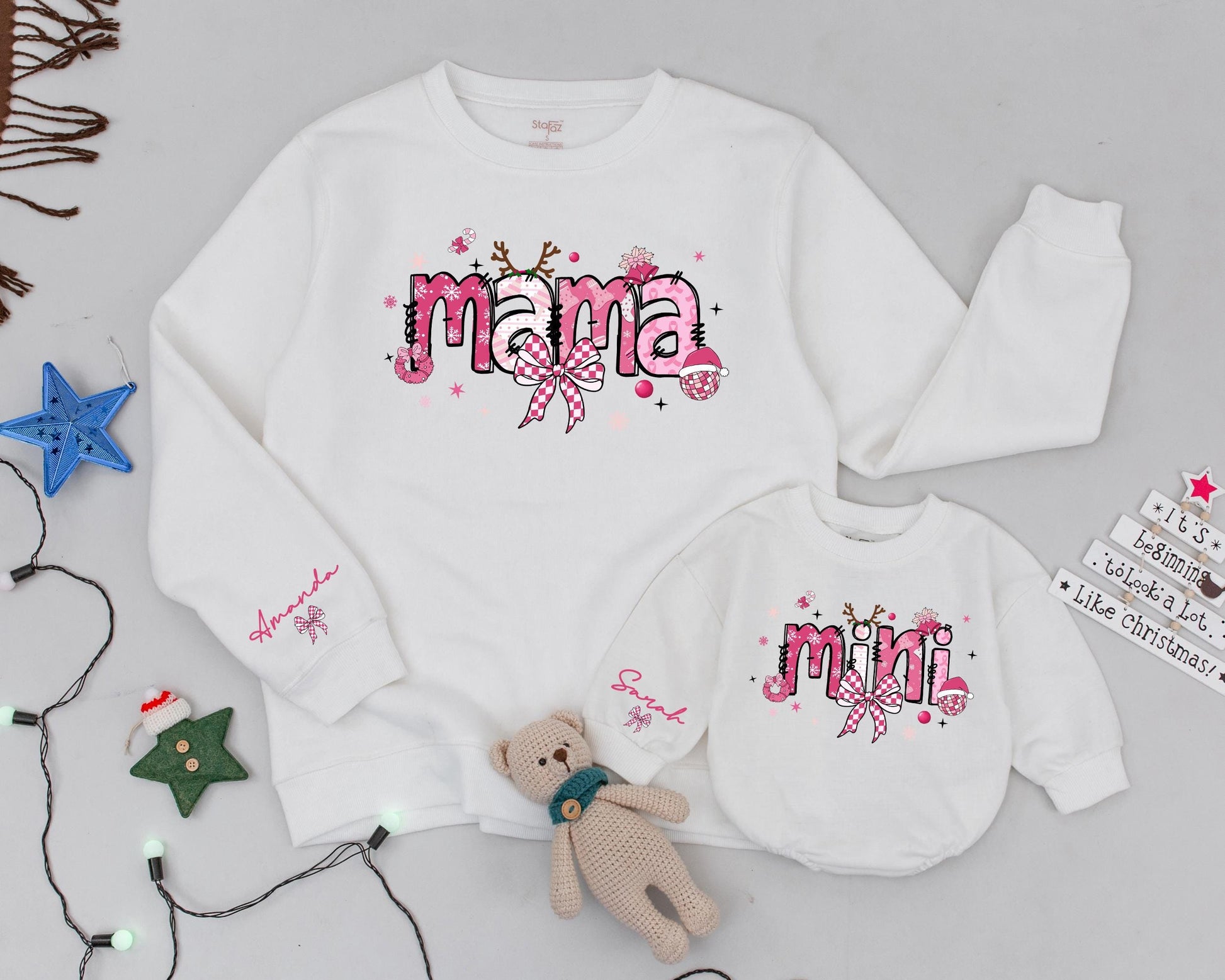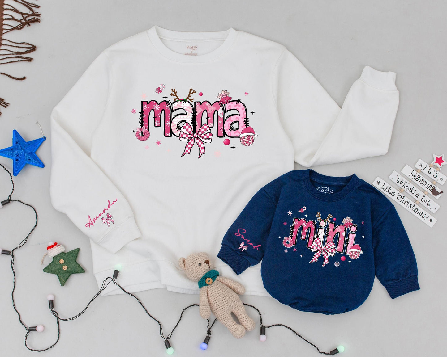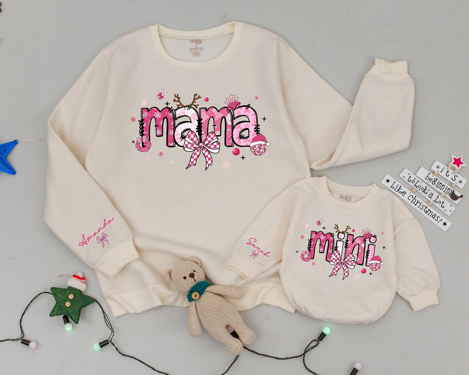 Vintage Pink Christmas Sweatshirt Set: Custom Mama & Mini Outfit